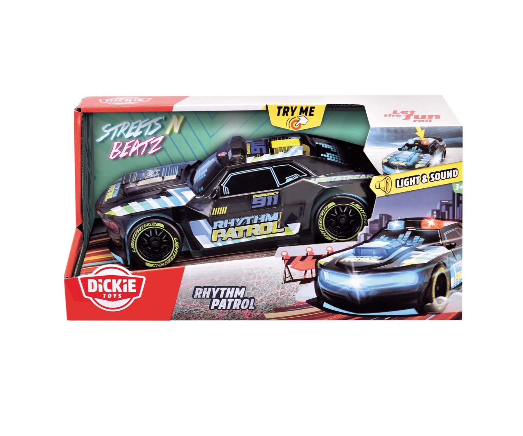 Rhythm Patrol toy car with flashing lights and built in music player.